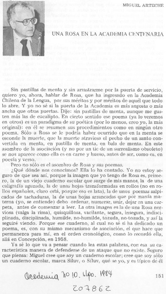 Una Rosa en la Academia centenaria [artículo] Miguel Arteche.