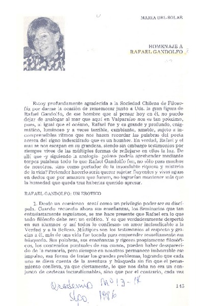 Homenaje a Rafael Gandolfo [artículo] María del Solar.
