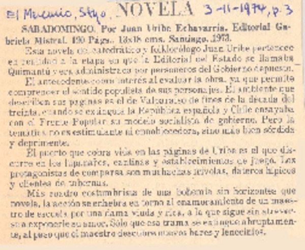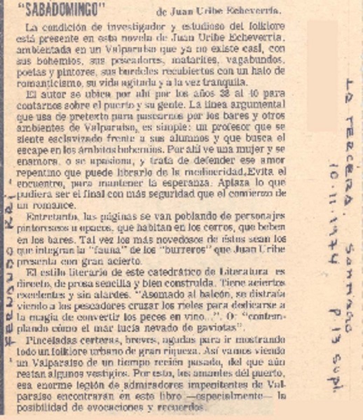 Autores chilenos - Uribe Echevarria, Juan - "Sabadomingo"