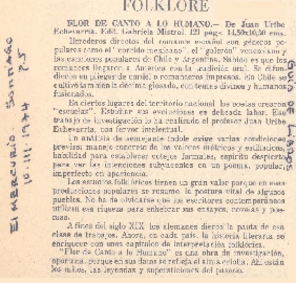 Uribe Echevarria, Juan - Flor de canto a lo humano - Autores chilenos