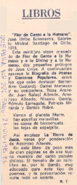 Flor de canto a lo humano" R. T.