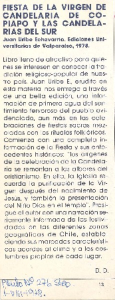 Fiesta de la Virgen de Candelaria de Copiapó y las Candelarias del sur [artículo] D. D.
