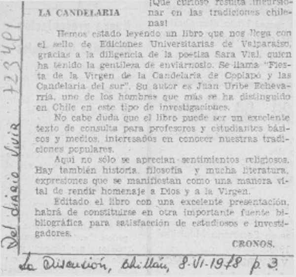 La candelaria [artículo] Cronos.