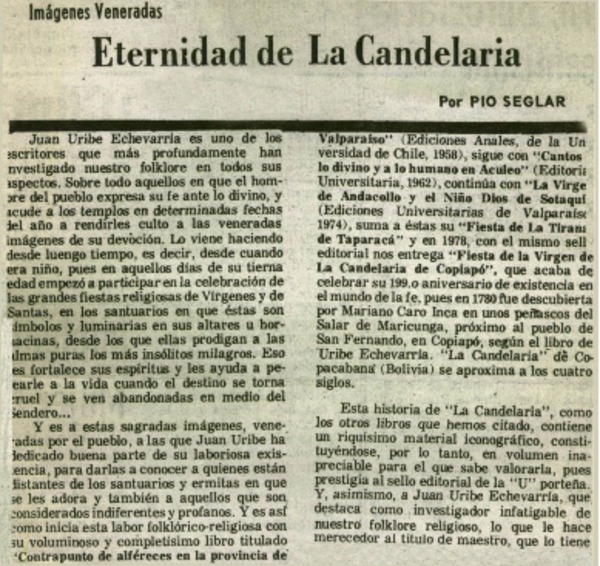 Autores chilenos - Fiesta de la Virgen de la Candelaria - Uribe Echevarria, Juan