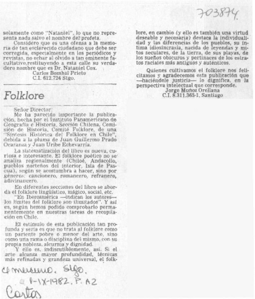 Autores chilenos - Prado O., Juan Guillermo - Síntesis histórica del folklore en Chile - Uribe Echevarria, Juan