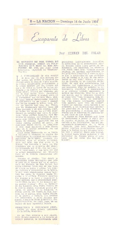 El romance de sor Tadea de San Joaquín [artículo] Hernán del Solar.