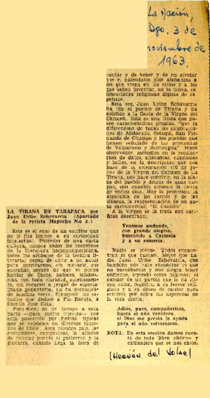 La Tirana de Tarapacá [artículo] Hernán del Solar.