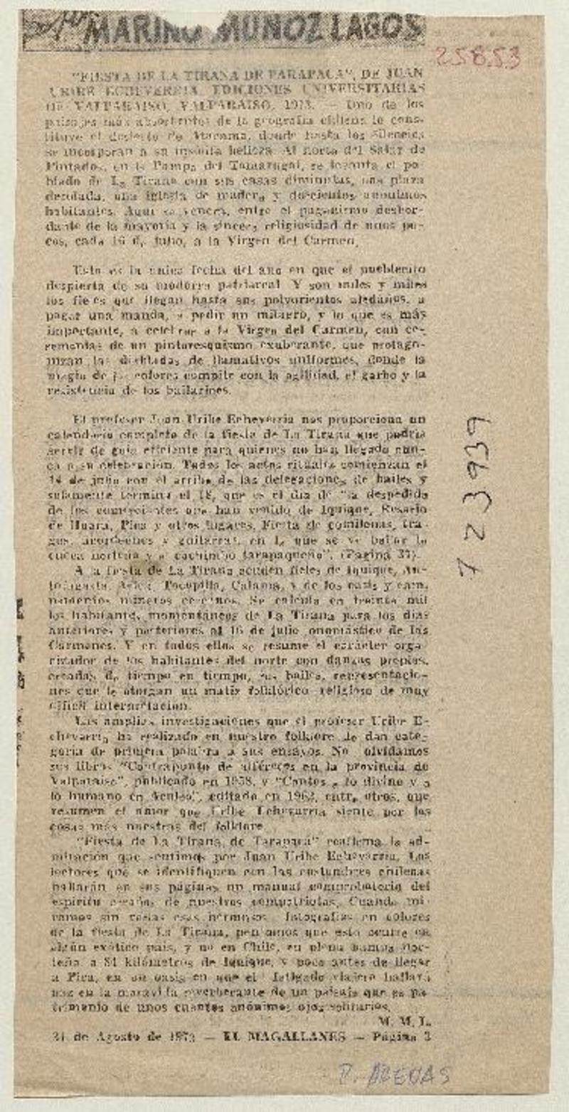 Fiesta de la Tirana de Tarapacá [artículo] Marino Muñoz Lagos.