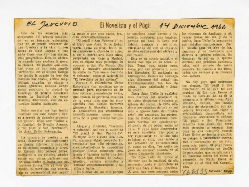 El novelista y el púgil [artículo] Salvador Reyes.