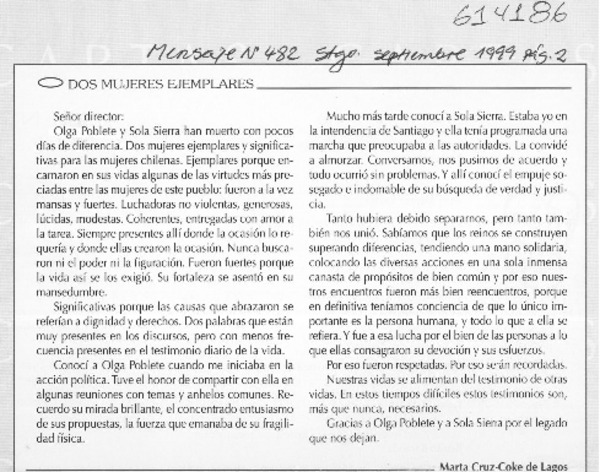 Dos mujeres ejemplares [artículo] Marta Cruz Coke de Lagos