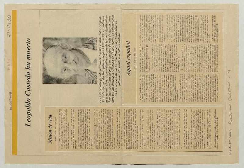 Leopoldo Castedo ha muerto [artículo] Marta Cruz Coke de Lagos <y> Cecilia García-Huidobro.