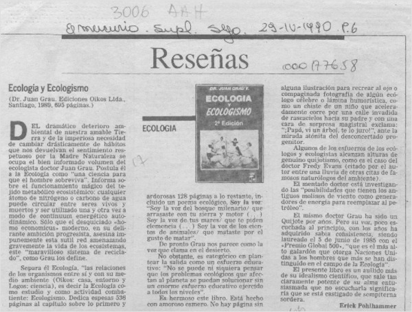 Ecología y ecologismo [artículo] Erick Pohlhammer.