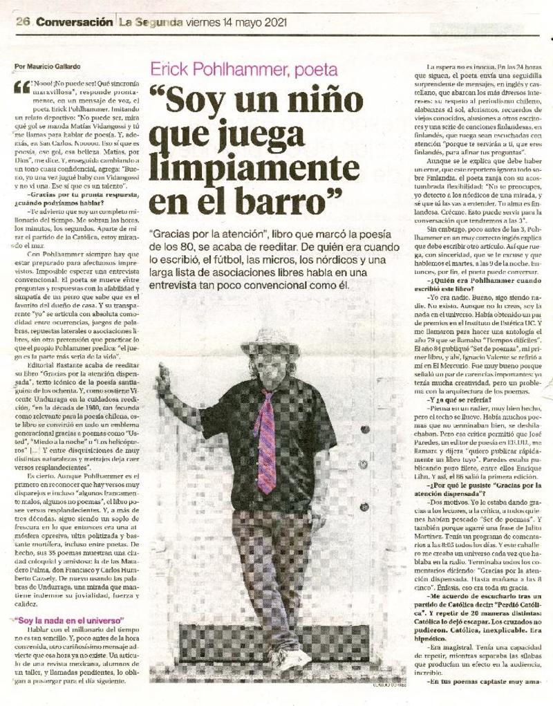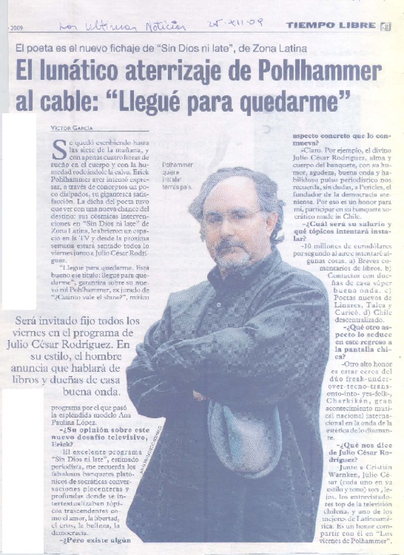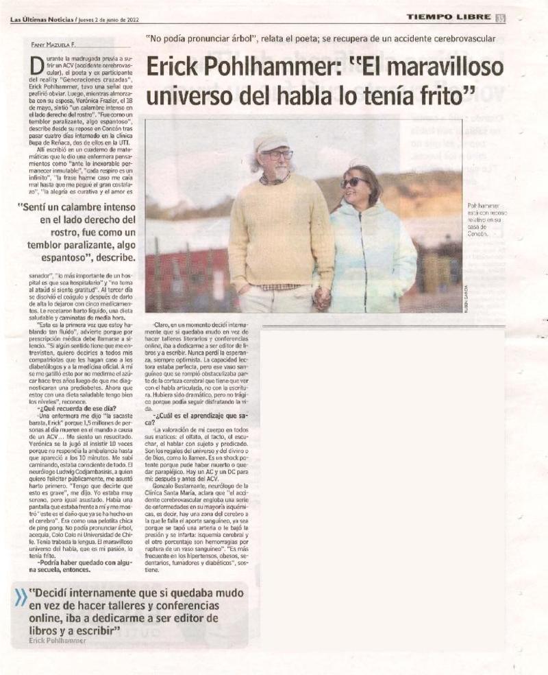 Erick Pohlhammer, "el maravillloso universo del habla lo tenía frito" [entrevista] [artículo] : Fany Mazuela F.