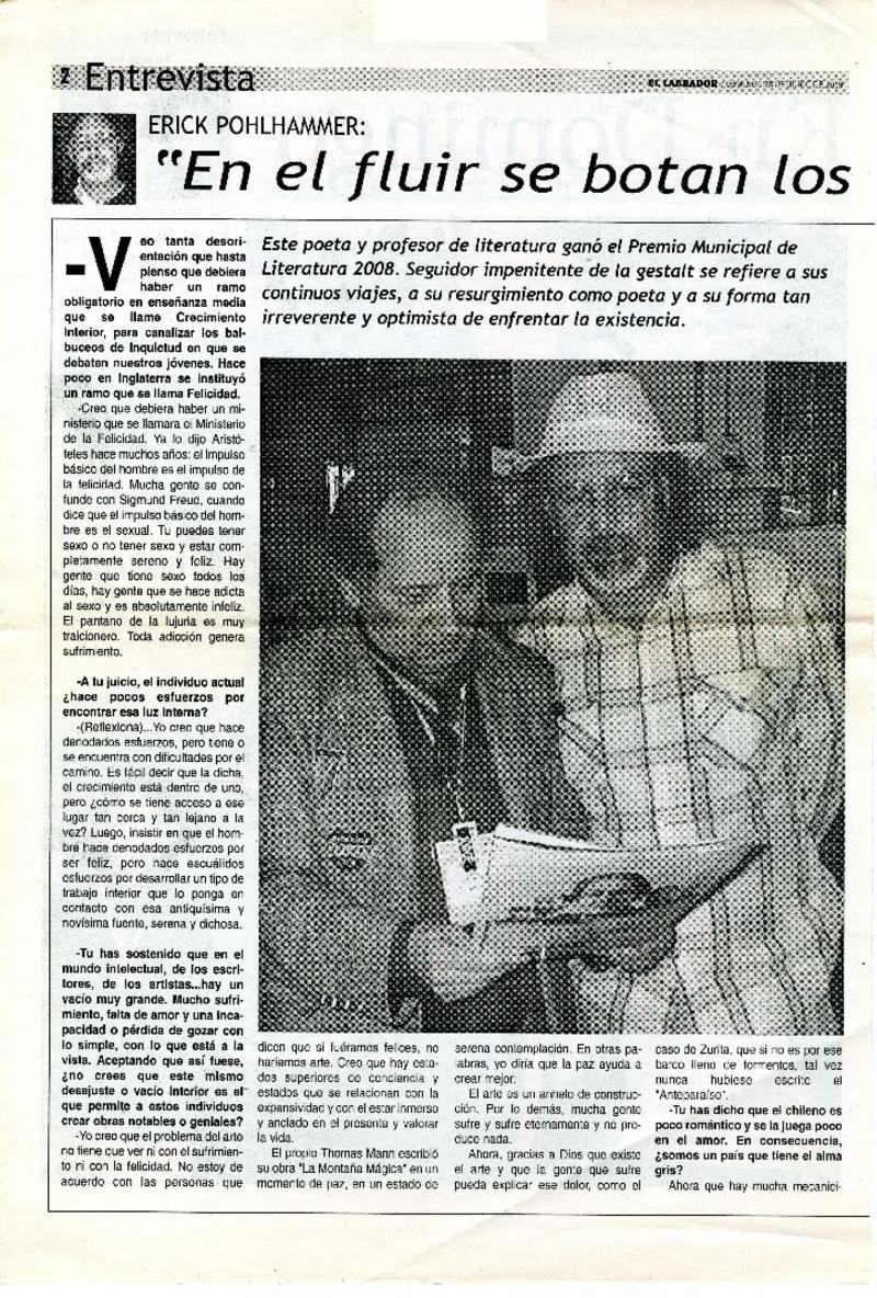 Autores chilenos - Entrevistas - Pohlhammer, Erick