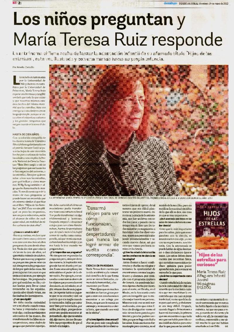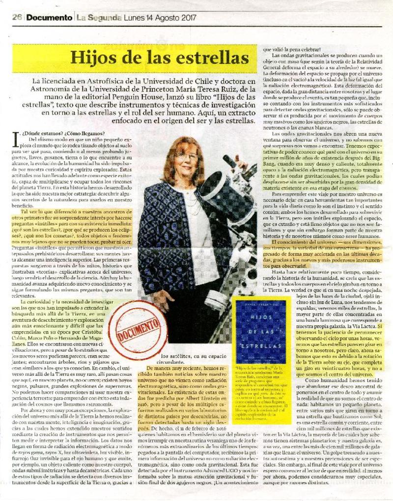Autores chilenos - Entrevistas - Maza, José - Hijos de las estrellas - León, Gabriel - Ruíz, María Teresa - Ruíz, Marìa Teresa - Somos polvo de estrellas - La ciencia Pop