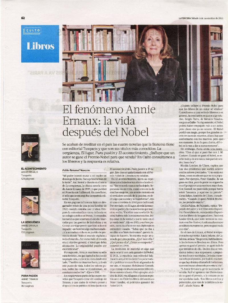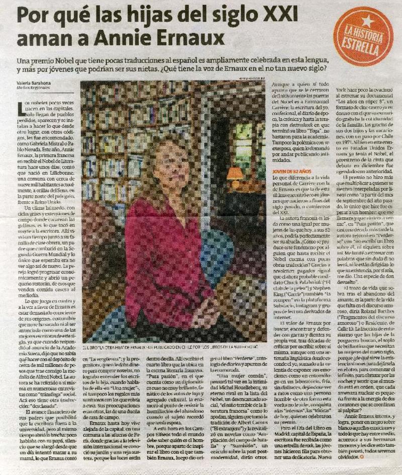 El fenómeno Annie Ernaux la vida después del Nobel [artículo] : Pablo Retamal Navarro.