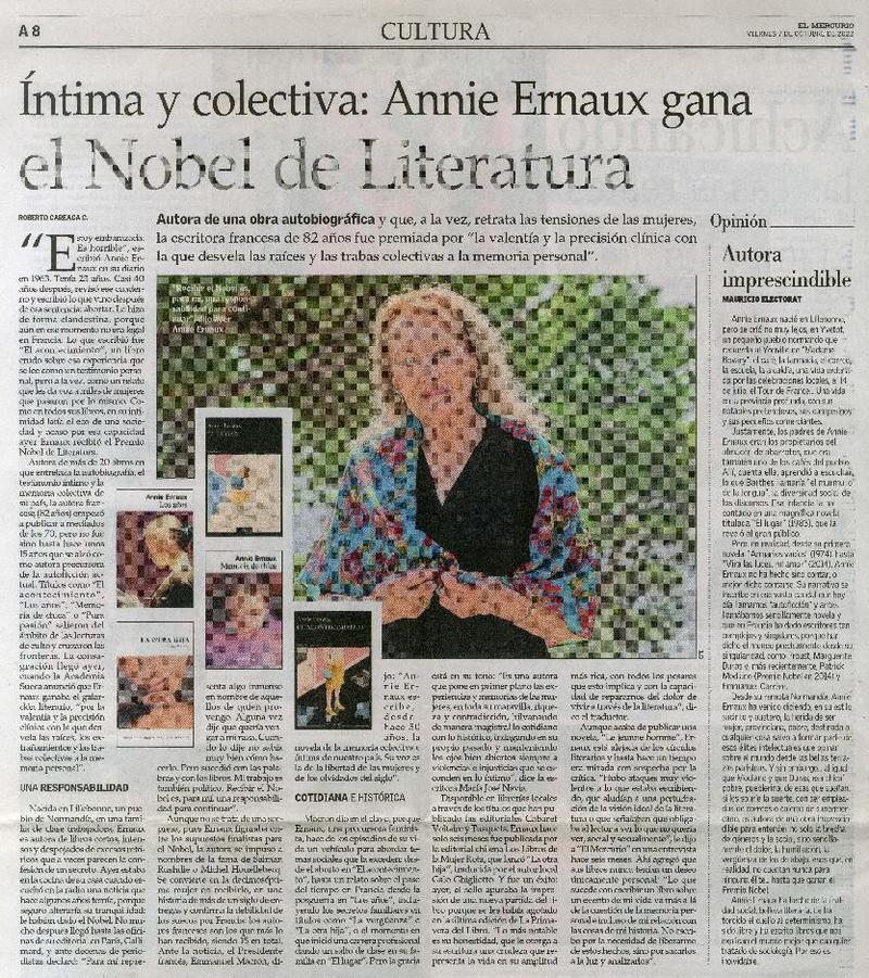 Íntima y colectiva, Annie Ernaux gana el Nobel de Literatura [artículo] Roberto Careaga C.