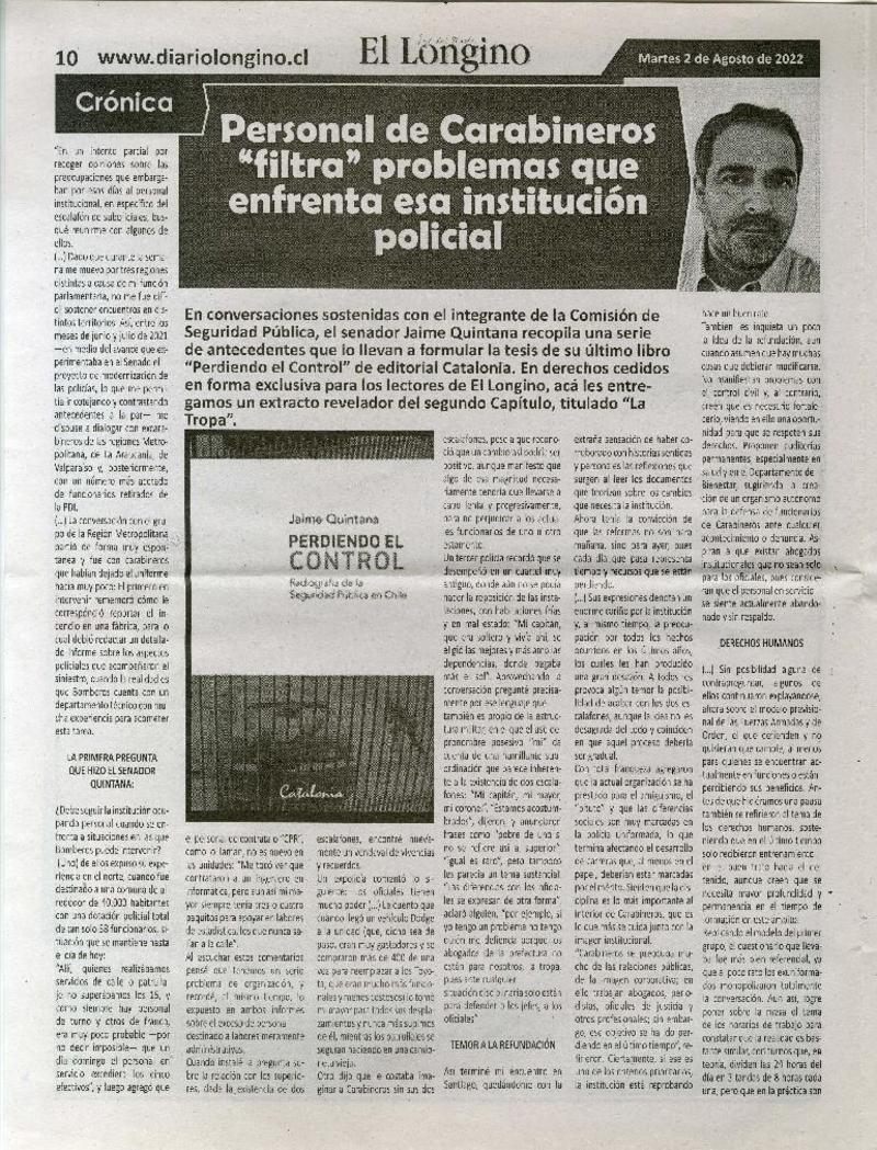 Quintana, Jaime - Autores chilenos - Perdiendo el control Radiografía de la Seguridad Pública en Chile