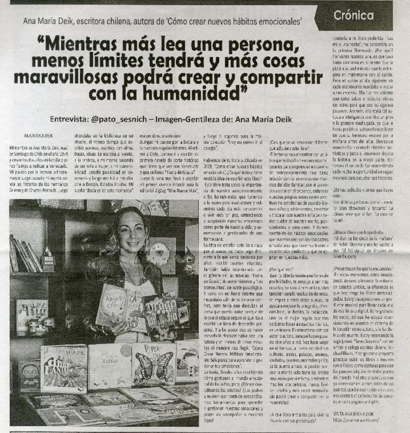 Deik, Ana María - Autoras chilenas - El lápiz magico de Matías - Entrevistas