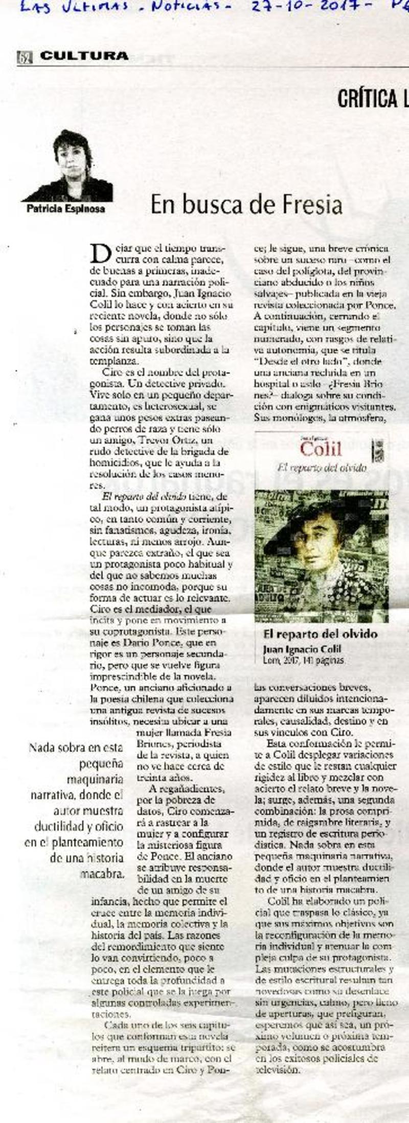 Autores chilenos - El reparto del olvido - Colil Abricot, Juan Ignacio