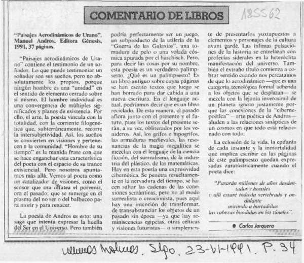 Autores chilenos - Paisajes aerodinámicos de Urano - Andros, Manuel - Casa de barro - Ruiz, Álvaro
