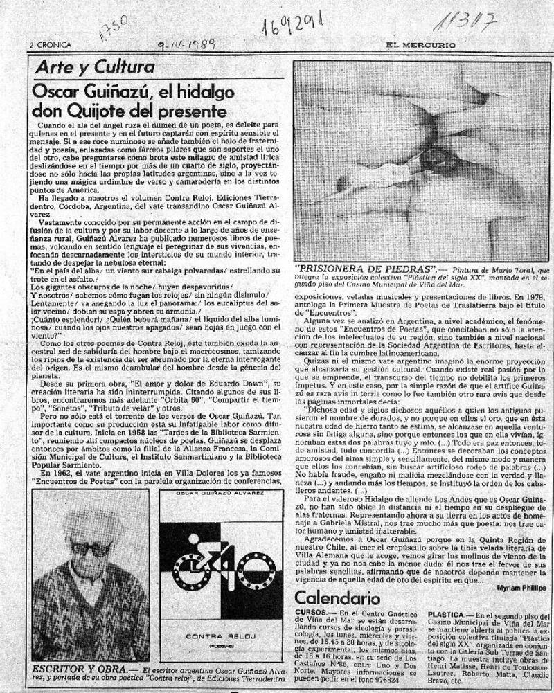 Oscar Guiñazú, el hidalgo don Quijote del presente [artículo] Myriam Phillips.