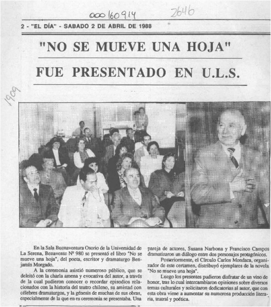 Morgado, Benjamín - Autores chilenos - No se mueve una hoja
