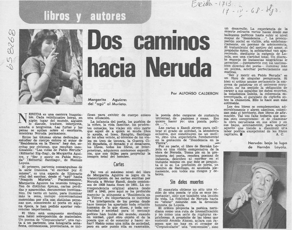 Dos caminos hacia Neruda [artículo] Alfonso Calderón.