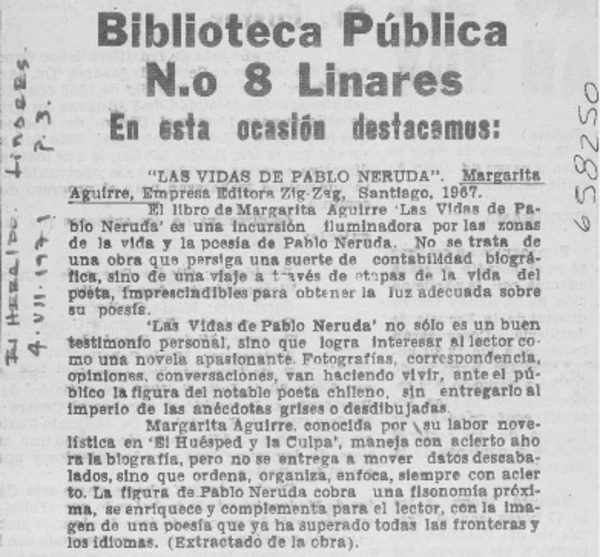 Las vidas de Pablo Neruda, de Margarita Aguirre. [artículo]