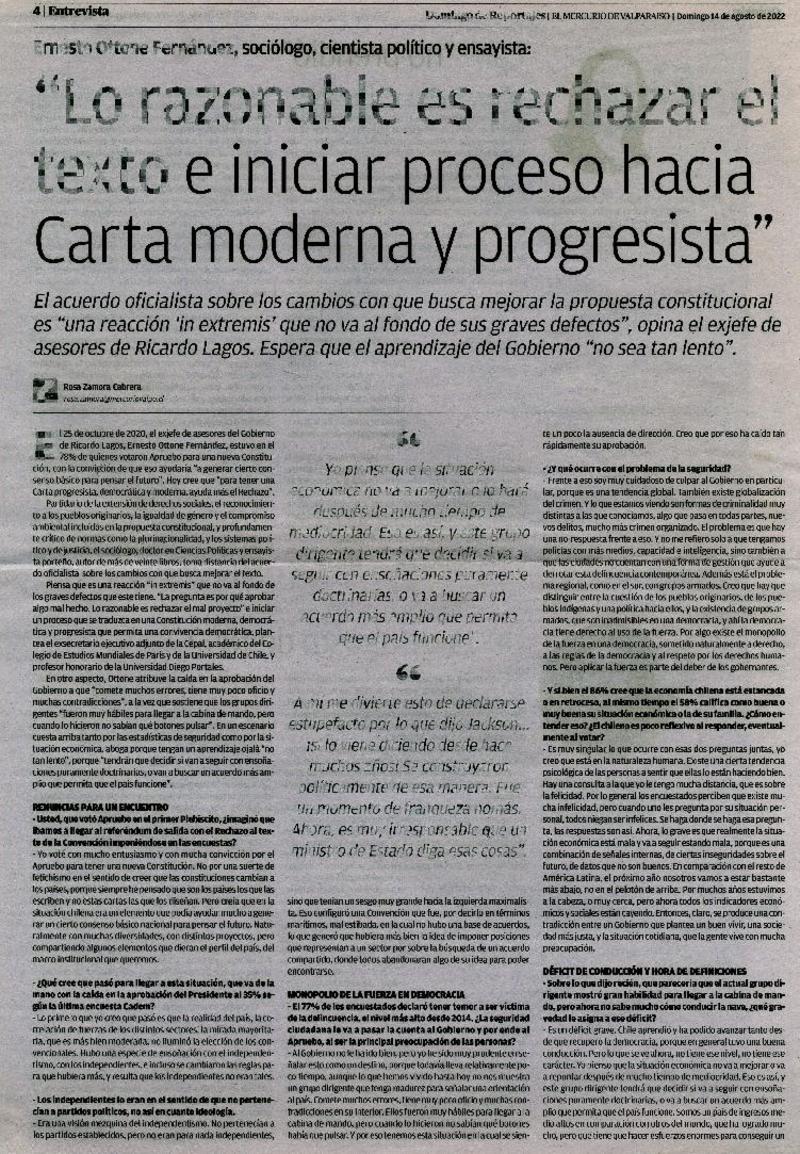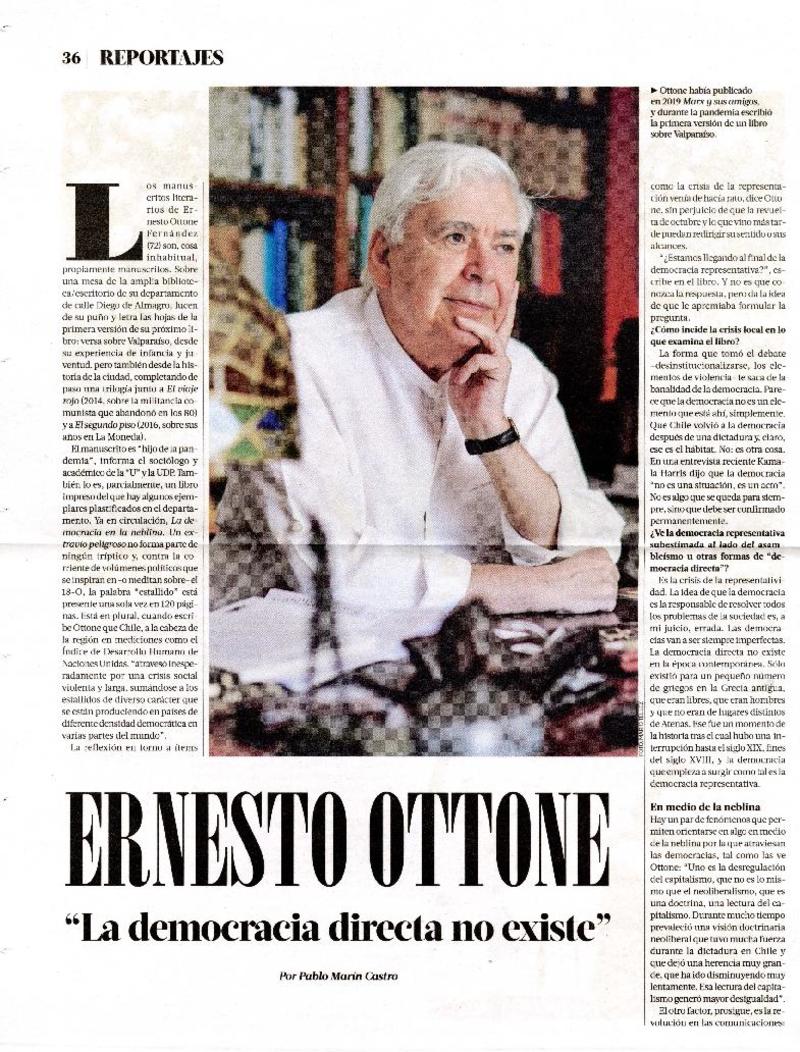 Ernesto Ottone, "La democracia directa no existe" [artículo] Pablo Marín Castro.