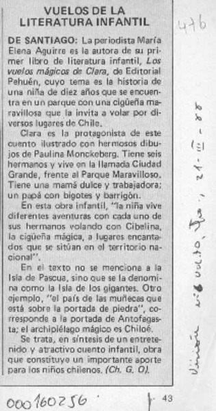 Presentado "Los vuelos mágicos de Clara", de María Elena Aguirre [artículo]