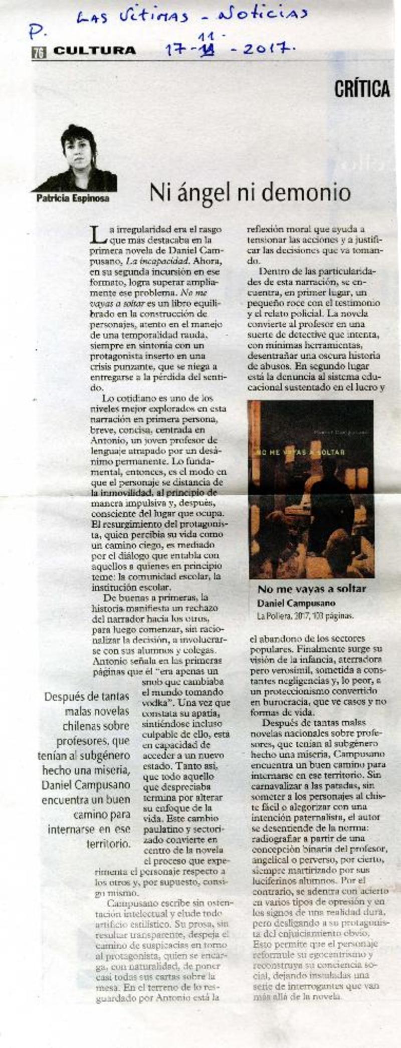 Ni ángel ni demonio [artículo] Patricia Espinosa.