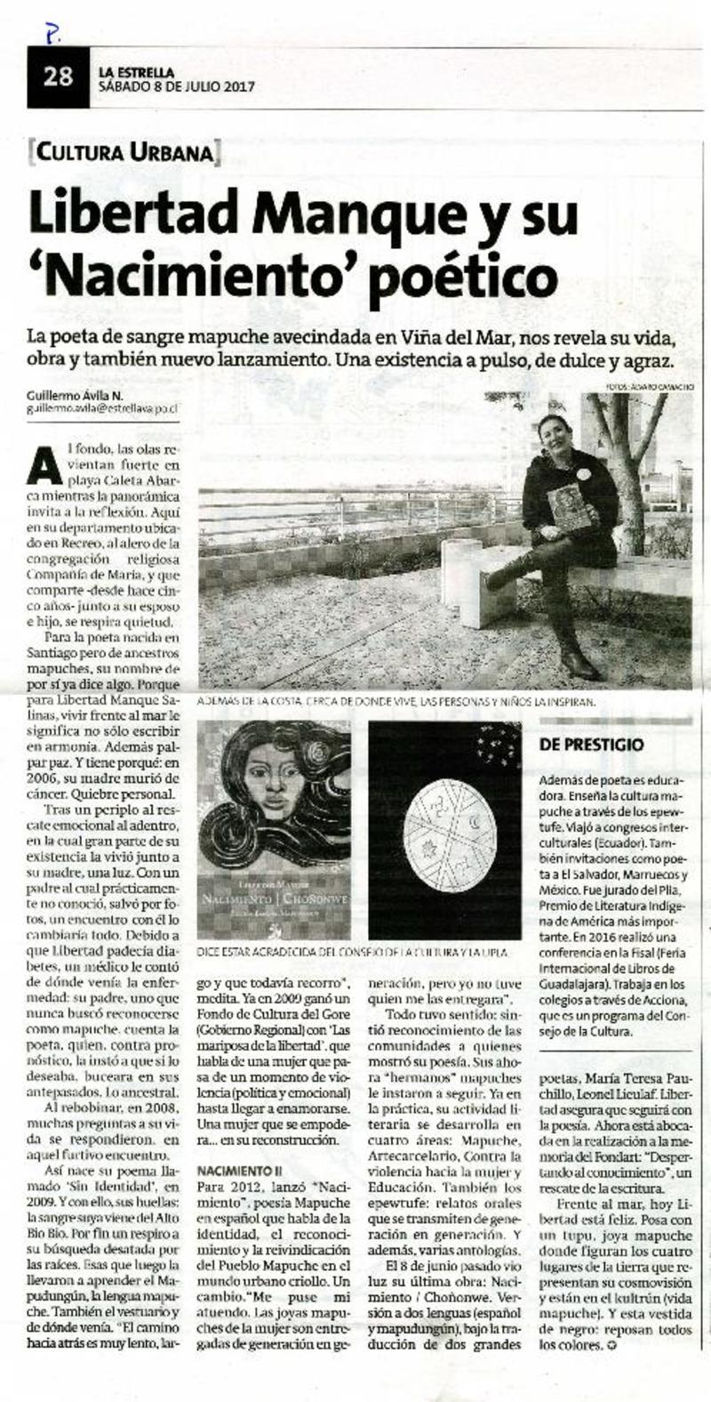 Libetad Manque y su "Nacimiento" poético [artículo] Guillermo Ávila.