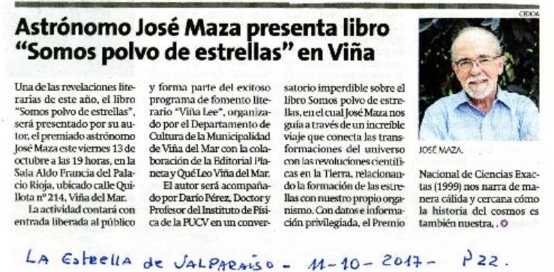 Astrónomo José Maza presenta libro "somos polvo de estrellas" en Viña [artículo] :