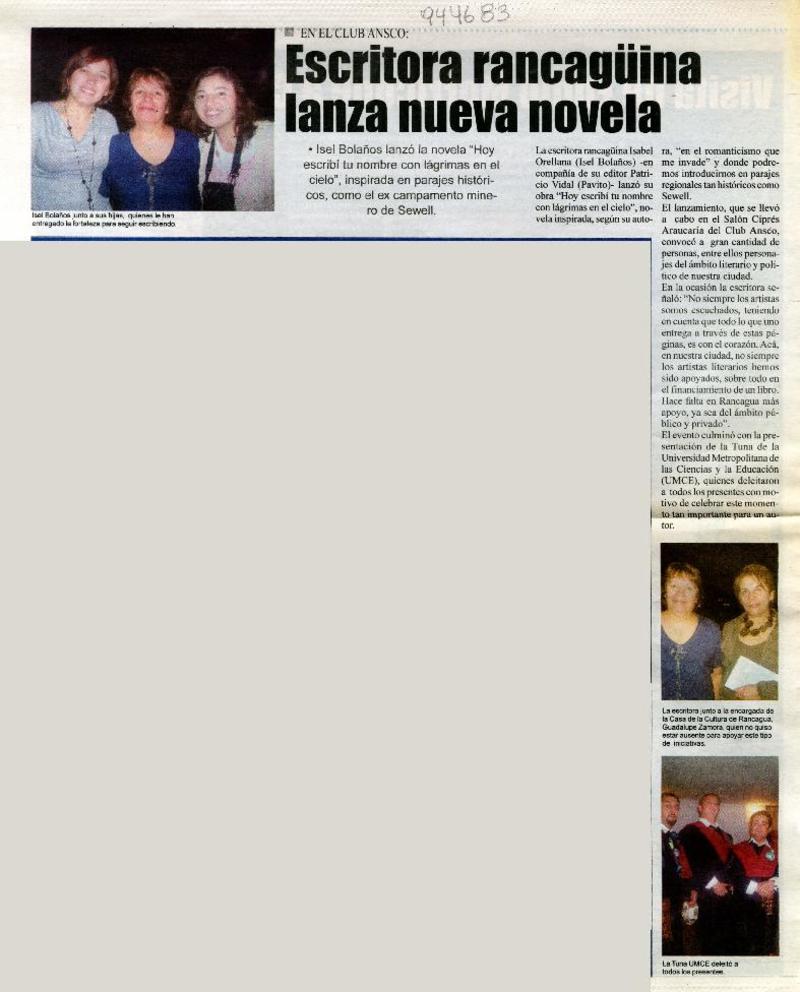 Escritora rancagüina lanza nueva novela [artículo]