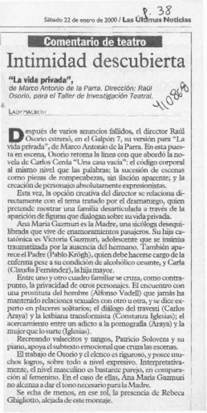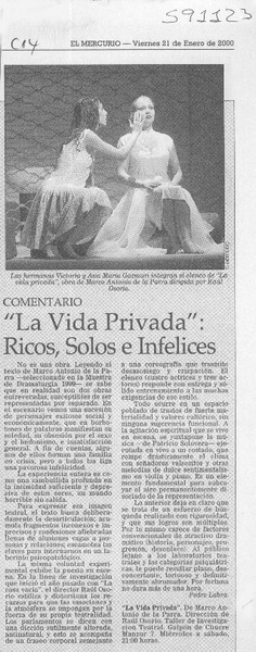 "La vida privada", ricos, solos e infelices [artículo] Pedro Labra Herrera.