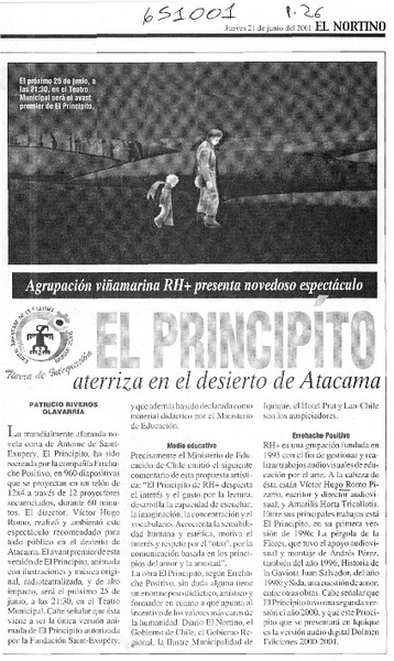 El Principito aterriza en el desierto de Atacama [artículo] Patricio Riveros Olavarría