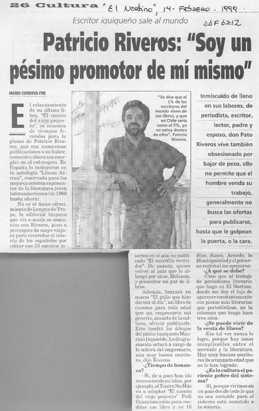 Patricio Riveros, "Soy un pésimo promotor de mí mismo" [artículo] Mario Córdova Fre.,
