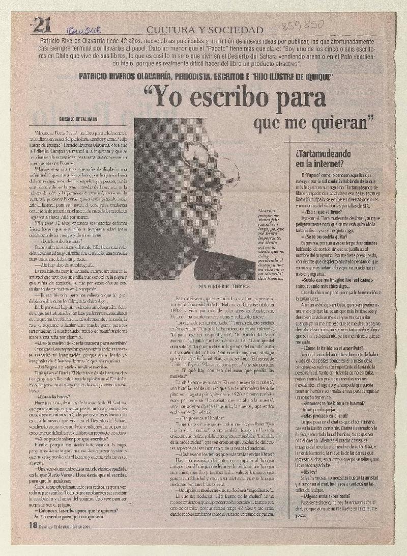 "Yo escribo para que me quieran" [entrevista] [artículo] : Gonzalo Artal Hahn