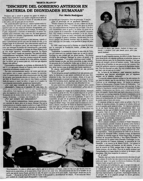 Marta Blanco, "nadie me contrató para manejar un tanque que arrase": [entrevista] [artículo] M. Olga Delpiano.