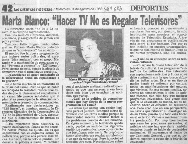 Marta Blanco, hacer TV no es regalar televisores [artículo].