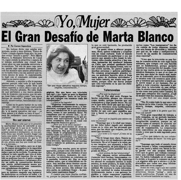 El gran desafío de Marta Blanco [entrevista] [artículo] Carmen Imperatore.