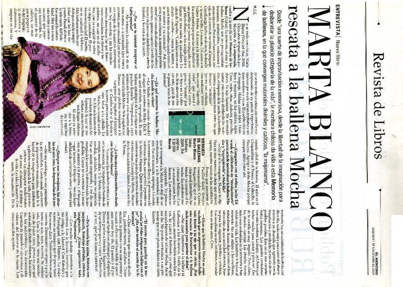 Autoras chilenas - Entrevistas - Blanco, Marta - Memoria de ballenas