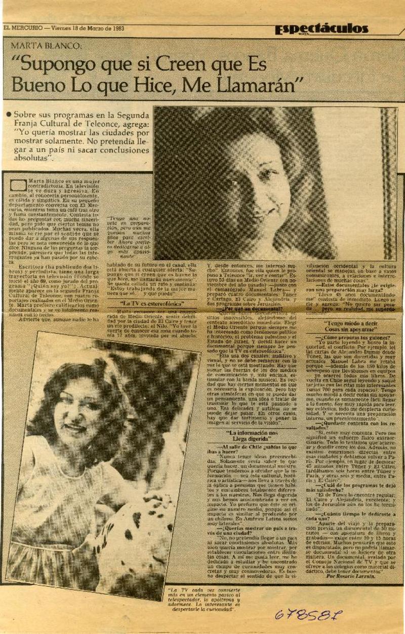 ¿Quién eres tú Marta Blanco? : [artículo] María Luz Contardo.
