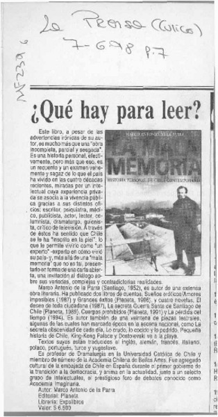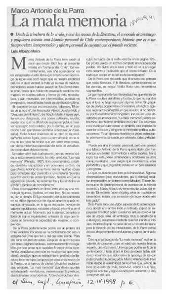 La "buena memoria" de Marco Antonio de la Parra [artículo] Wellington Rojas Valdebenito.