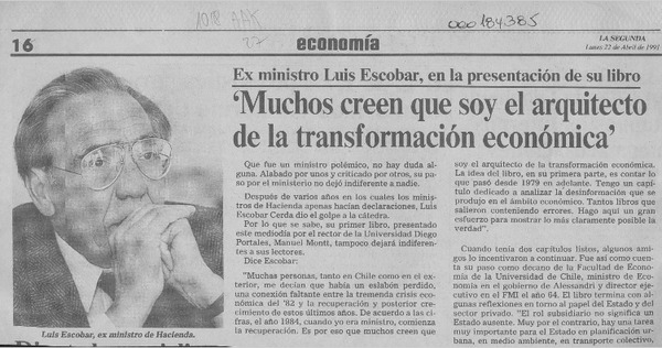 Luis Escobar Cerda "Mi testimonio" - Hernán Buchi Buc [artículo] Alejandro Lara León.