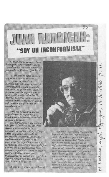 Juan Radrigán, "Soy un inconformista" [entrevista] [artículo] :
