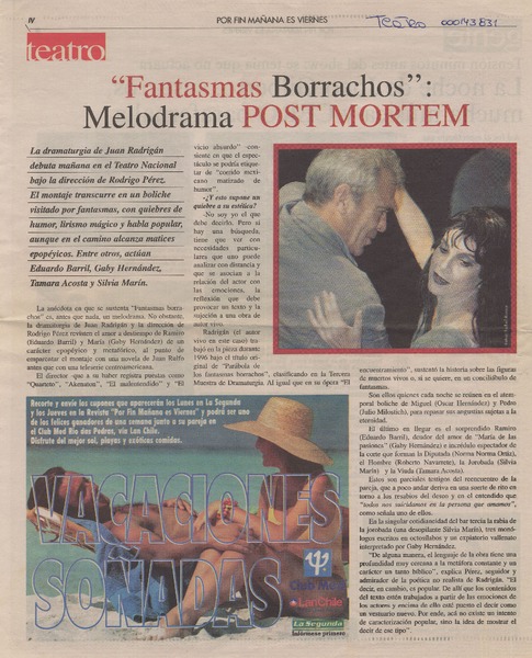 "Fantasmas borrachos", melodrama post mortem [artículo] Javier Ibacache V.