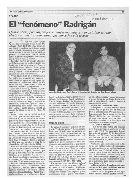 El "fenómeno" Radrigán [artículo] Ana María Foxley.
