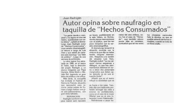 Autores chilenos - Radrigán, Juan - Entrevista - Hechos consumados